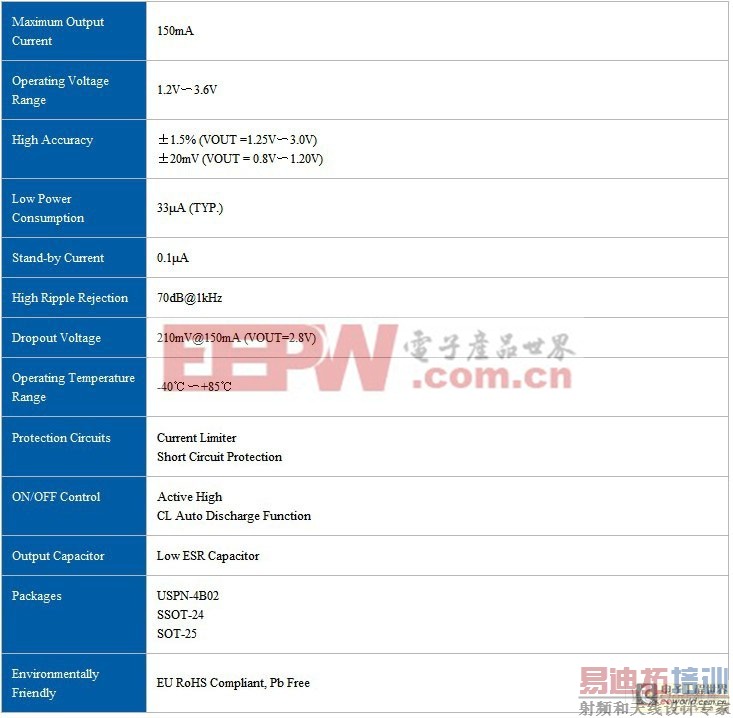 具有高速瞬态响应特性,及70dB @1kHz的纹波除去率特性。