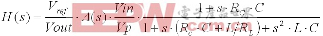 这里,Rc是输出电容的ESR,是输出负载的阻抗;L和C分别是输出滤波器的电感和电容值,调节器的环路增益H(s)表示成: