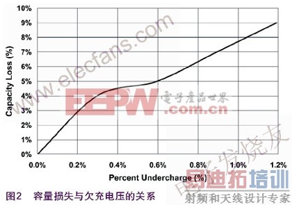 为了尽可能地充分利用电池容量,输出电压稳压精度非常关键。输出电压精度的小幅度下降也会导致电池容量的大幅减少。然而出于安全和可靠性方面的考虑,输出电压也不能随意设置得过高。图2显示出了输出电压稳定精度的重要性。