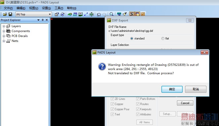 请问各位大师们,pads怎么转DXF 出现以下对话框是哪儿出错了呢?我已经装了好几个版本的PADS了,都是出现这样的情况。此时点确定是可以生成文件,但是用CAD打开时,CAD却提示输入文件不完速,按回车键就什么都没有了。