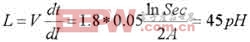 其中,dt是瞬态电流的最快上升时间。假设一个2A的电流有着1ns的上升时间,电源分布系统保证1.8V电源供电5%以内的纹波。允许的电感量估算如下: