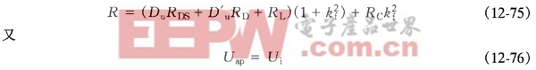 综上所述,开关晶体管支路中电阻RDS1=RDS(1+k2f)/D,,移到电感支路中,等效为DURDS(1+k2f);二极管D支路中电阻RD1=RD(1+k2f)/D'U移到电感支路中,等效为D'URD(1+k2f );二极管D支路内电压UDO移到电感支路中,等效为D'uUDO。
