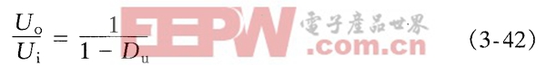 在稳态工作时,在开关管V导通期间电感电流的增加量△iLf(+),等于它在V关断期间的减小量△iLf(-)由式(3-39)和式(3-41)可得: