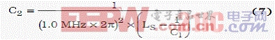 若要计算 C2,Ls 时,次级谐振频率需为 1.0 MHz。计算要求首先确定 C1,然后代入方程式 7 计算: