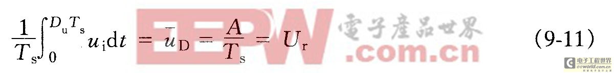 单周期控制的关键元件是积分电容。主开关管导通时,反馈控制积分器开始积分,y(t)积分值与ur实时进行比较,当A=ur时,控制器发出命令,改变主开关管的工作状态,同时积分器复位到零。在该周期内,占空比Du由式(9-14)决定。