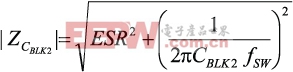 虽然这些电感互相耦合,但并不希望耦合太紧,以至于将一个绕组的大量能量通过铁芯传输至另一个绕组。为了避免这一点,必须求得耦合电感的泄漏电感(LLKG),并选择适当的能量传输电容(CBLK2),使得其复数阻抗的幅值为泄漏电感与单个绕组电阻(DCR)的复串联阻抗的1/10,如方程式2、3、4所示。按照这一关系设计电路,可使耦合铁芯所传输的能量降至最低。泄漏电感可以根据耦合电感数据手册中提供的耦合系数计算。