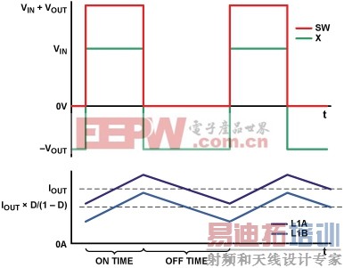 图4中,功率电感L1A和L1B显示为彼此耦合。在这种拓扑结构中,耦合电感的目的是减少输出电压和电感电流的纹波,并且提高最大可能闭环带宽,下一部分将对此加以说明。