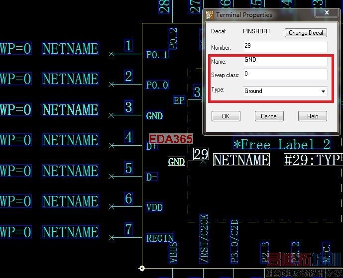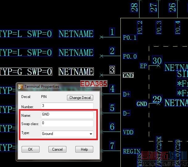 象下面的元件的(第3)和(第29)脚 ,把Name 和 Type 都设成相同的,这下软件该答应了吧!