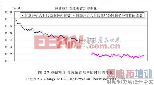 2)过程2:在过程1完成后,功率座壁等热敏电阻的周围环境与热敏电阻的热交换的影响开始显现,PRFsub≠Psub,有效效率开始偏离真有效效率,ηteff≠ηeff,图2-7显示的就是这一过程。
