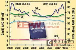 带有片内LO缓冲器的完全集成、2300MHz至4000MHz、下变频混频器MAX19998。器件采用Maxim专有的单片SiGe BiCMOS工艺设计,在极宽的工作带宽内具有无与伦比的线性度和噪声性能,以及极高的元件集成度。单片IC提供完全集成的下变频通道,具有24.3dBm (典型值) IIP3、8.7dB (典型值)转换增益以及9.7dB (典型值)噪声系数。此外,MAX19998具有业内最佳的2RF - 2LO杂散抑制(-10dBm RF幅度时为67dBc、-5dBm RF幅度时为62dBc)。该器件专为4G无线基础设施应用而设计,这类应用中高线性度和低噪声系数对增强接收器的灵敏度和抗阻塞性能至关重要。器件支持3.1GHz至3.9GHz LTE和WiMAX 基站中的高端和低端LO注入架构;MAX19998还可配置为2.3GHz至2.9GHz LTE、WiMAX和MMDS高端LO注入架构。