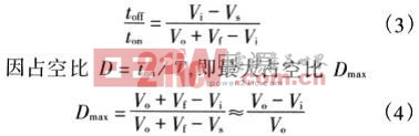 在电路稳定状态下,即从电流连续后到最大输出时,△ILon=△ILoFf,由式(1)和(2)可得