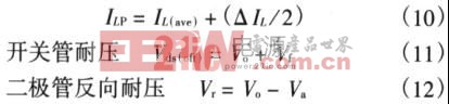 另外,由Boost升压电路结构可知,开关管电流峰值Is(max)=二极管电流峰值Id(max)=电感器电流峰值ILP,