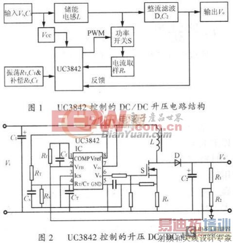 由UC3842控制的Boost拓扑结构及电路分别如图1和图2所示。