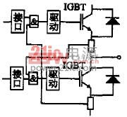 另外,由于同一桥臂上的两个IGBT的控制信号重叠或开关器件本身延时过长等原因,使上下两个IGBT直通,桥臂短路,此时电流的上升率和浪涌冲击电流都很大,极易损坏IGBT 为此,还可以设置桥臂互锁保护,如图3所示。图中用两个与门对同一桥臂上的两个IGBT的驱动信号进行互锁,使每个IGBT的工作状态都互为另一个IGBT驱动信号可否通过的制约条件,只有在一个IGBT被确认关断后,另一个IGBT才能导通,这样严格防止了臂桥短路引起过流情况的出现。