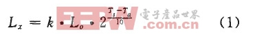 估算任何产品的寿命,主要是确定所有电子元件的磨损机制,然后找出最短的元件寿命。对于大多数电源供应器,包括LED驱动器,寿命最短的元器件会是电解电容。电容中的电解液会随着工作温度及工作时间不同程度的挥发,而电容纹波电流也会影响寿命。虽然电解电容可能各有不同,不同厂家或不同的元件型号,但一个典型的电解电容器的寿命一般可以采用以下公式来表示: