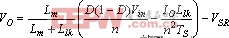如图 2 所示,从供电模式 2 开始,由于 S1 开启,Vin-VCb 施加到变压器的初级端,励磁电流 im 以斜率 (Vin-VCb)/Lm.增加,由于 SR2 关断,LO1 的电流斜率就由 (Vin-VCb)/n 减去输出电压决定。另一方面,LO2 的电流以斜率 –VO/LO2减小,这是流经 SR1 的续流 (free-wheeling)。当两个输出电感分享负载电流时,SR1 承担全部负载电流。变压器的次级绕组仅处理 iLO1 ,所以 vT2 较图 2 所示的数值稍低,但我们在这一章段中将忽略这一情况,从而简化分析。