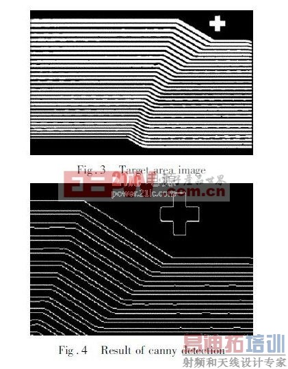 在轮廓分析之前,首先要提取线路单像素边缘,且由于二值化后的线路边缘明确,canny 边缘检测即可得到单像素边缘图像。图4 为采用canny 边缘检测后的结果的局部图。