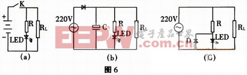 (2)图6(a)、(b)、(c)分别为直流电源、整流电源及交流电源指示电路。