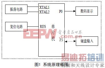 建立键值对应的显示码,通过查表指令实现键值的显示。由此画出设计流程图和利用汇编语言进行编程。最后利用Proteus画出电路图进行仿真。其系统原理框图如图1所示。