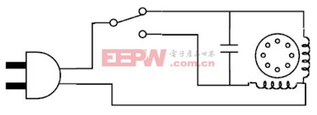 如果两个绕组之间的相位差不足,这类单相电机就无 法运行,因此它们也常被称为双相电机。而在输入信号和绕 组之间放置一个电容便可以产生接近90