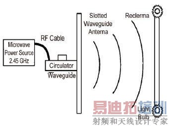 无线电波式,基本原理类似于早期使用的矿石收音机,主要有微波发射装置和微波接收装置组成。典型的是20世纪60年代布朗(William C. Brown)的微波输电系统,其示意图如图3.整个传输系统包括微波源、发射天线、接收天线3部分;微波源内有磁控管,能控制源在2. 45 GHz频段输出一定的功率;发射天线是64个缝隙的天线阵,接收天线拥有25%的收集和转换效率。日本龙谷大学的移动式无线充电系统,也是通过频率为2.45GHz的微波送电,点亮了行驶中的模型警车的警灯。