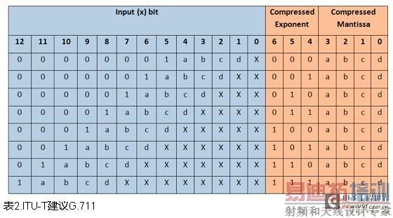 Mu率压缩通常用在音频压缩中,是ITU-T建议G.711和G.191推荐的方法。在这些音频压缩方法中,设定了较大的Mu_compand_val=255值。它产生2n指数,通过直接位移实现分段线性逼近,位移量由指数决定(参见表2)。图3显示了分段数和8位输出。