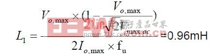 当电路工作在电流连续模式和电流非连续模式之间的临界模式时, ΔI=2I o,max,此时电感可以按照下面的公式计算:
