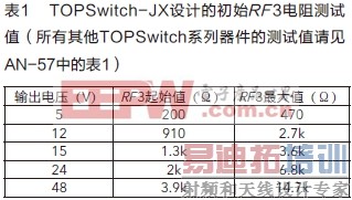 上表还列出了最大电阻值(与CTR = 1.0的光耦器一起使用)以确保电压稳定。选定的RF3值不应超出此列中的最大值。如果RF3值较大,会限制光耦器的LED电流并造成电压失调。