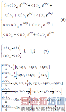 i和u近似表示为式(6)。由于i和u均为实数,有式(7),其中*表示复数共轭。由此可建立变换器的动态相量模型为式(8)。