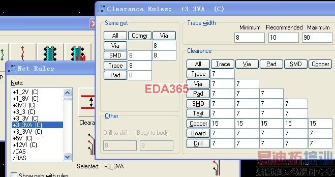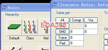 另外在Net设置中,因为本身就是针对特定的网络定的规则,是不是应符合Same net中的安全间距要求?而不是普通的安全间距要求?请高手给解答。谢谢!