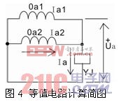 当一次系统正常运行时,这种并列运行方式影响不大,各计量表计和保护装置采样到的电压基本正常,但当一次系统发生异常时,情况就发生了根本性的改变。如其中某一段母线发生故障时,由于两个电压互感器的一次侧是分段运行的,而二次回路为并联运行,相当于将两个不同系统的电压强行并列在一起,并列在一起的两组不同电压的幅值与相位将会发生“争抢”现象,造成电压回路异常。以10kV4号母线A相接地为例,来分析合成电压的变化,验证这次故障的判断处理正确与否。其等值电路计算简图如图4。