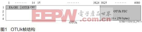 在ITU-T的G.709协议中,ITU-T规定了OTN的帧结构,如图1所示。