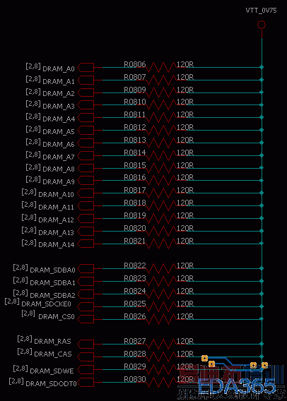 DDR3 地址线,上拉电阻的放置位置