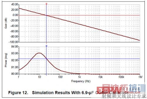 图11显示了仿真结果。该图表明,交叉频率为49Hz,并且相位余量为91度。