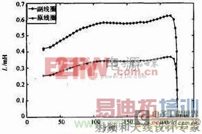 实验中还测试了电路中的输入输出的其他电感元件的电感量随温度的变化。在整个加热阶段,其他元件的电感量随温度变化很小,与变压器电感量变化相比可以忽略。而且在变压器电感量下降的阶段,其他电感元件的电感量变化仍然较小。