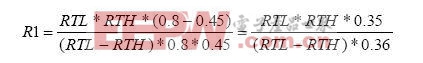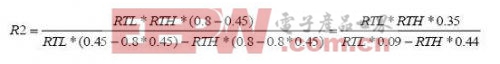 电池温度监测电路的设置主要是对R1和R2进行设置,假设NTC热敏电阻在最低工作温度时的电阻为RTL,在最高工作温度时的电阻为RTH(RTL与RTH的数据可查相关电池手册或通过实验得到),则R1,R2的阻值分别为: