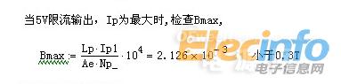 有关Bmax的取值,对于常见的PC40/PC44材料,保证在最恶劣工作状态下,不要超过0.38。计算的时候,一般选取0.28-0.32之间,假如在极限条件下抓到饱和波形,可以抬高一点频率。