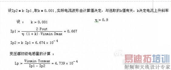 K值就是上面说的电流连续比上面计算书定义的Ip2是电流上升前沿Ip1是电流上升后沿。所以当K=0的时候变压器是工作在临界模式以下的为防止计算出错一般习惯取0.001.