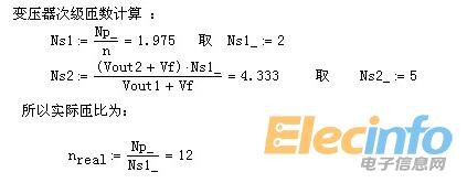 注意合理匝数取整。这个结合自己项目实际情况,取整后,变比会有所变化,Dmax也会有所变化,所以需要用取整后的参数进行核算Bmax。