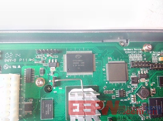 主板部分我们先从主控芯片看起吧,大家猜猜看,那个是最主要的芯片,我猜一定是那个带着散热片的芯片吧。来张特写看看吧。