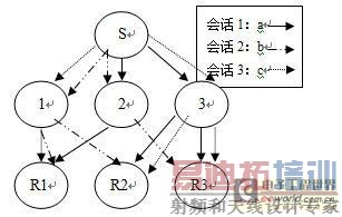 通过比较基于网络编码的组播和现在的组播来研究负载均衡的影响。假定基于网络编码的组播使用图2(d)例子中的容量的一半。在这种情况下,单会话IP组播和网络编码都在单位时间内向所有的接收端发送了2比特。在图2(b)中,通过了网络中9条链路(总共发送10比特)中的5条来传输2比特,另外4条没有使用。另一方面,当网络编码使用时,2( d) 通过了9条链路(总共发送9比特)来传输2比特。于是通过应用网络编码,流量负载可以分散在整个网络上。