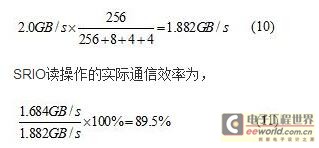下面计算本测试条件下SRIO读/写的理论数据传输速率和实际通信效率。