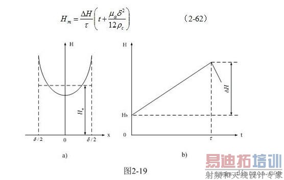 从图2-19-a可以看出,当x =δ/2 时,铁芯片表面磁场强度的最大值为: