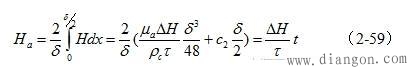 由于在变压器铁芯片内,截面磁场强度的平均值Ha,在任一时间内都必须等于电磁感应所要求的值,即满足(2-45)式的要求,因此对应图2-18对(2-58)式求平均值得: