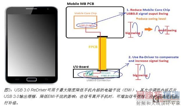 USB 3.0输出摆幅,降低EMI干扰的影响;在信号离开手机时,可增加信号摆幅,并对通道损耗进行补偿。