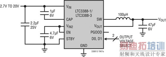 图 1:LTC3388-1 / LTC3388-3 典型应用原理图
