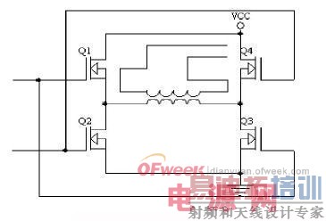 (2)全桥整流式电路。图2所示为全桥整流式电路。该方案采用了4个MOS管,工作时对管同时导通,半周期内Q1、Q3导通,Q2、Q4截止,然后Q2、Q4导通,Q1、Q3截止。这样的工作方式使每半周期都有2个MOS管来分压,对MOS管的耐压要求就降低了,适用于高压场合,但由于使用了4个MOS管,使得损耗功率增加,开关损耗同时增加。考虑到农业机械一般功率较大,采用该方案必然降低电能利用率,导致大量的能耗损失。