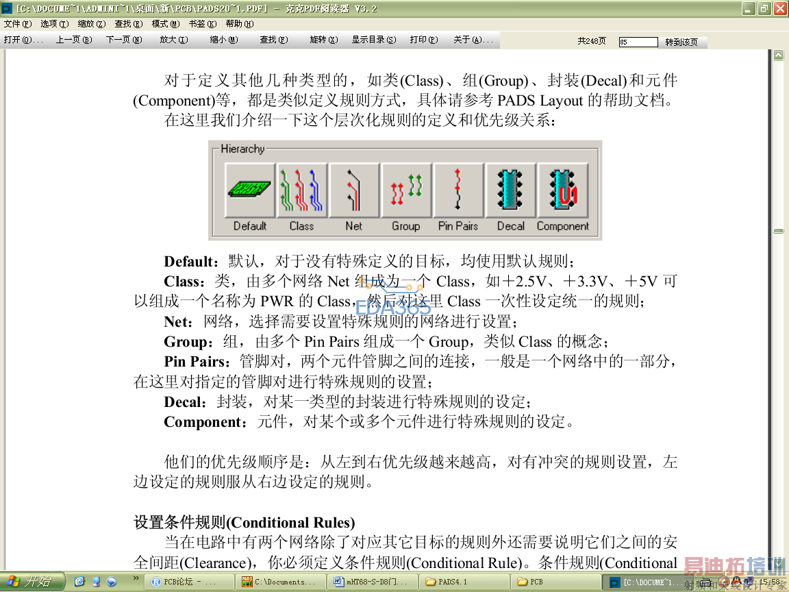 我就纳闷了为什么安全间距都设为0.15MM了可为什么自己在外面检查已经合格安全间距了还是有错误!我记得以前这块板是没问题的..不知道是不是版本有问题还是.怎么回事......还有就是出错误的都是地网络的安全间距有问题把所有地网络的安全间距重设为0.15才没问题..可奇怪的是安全间距设置里面已经都是0.15了啊为什么在外面全部选择地网络的时候却都是0.254了奇怪。郁闷啊!我上传给大家看看在你们版本里面检查有没有问题...要是有又是怎么回事?谢谢