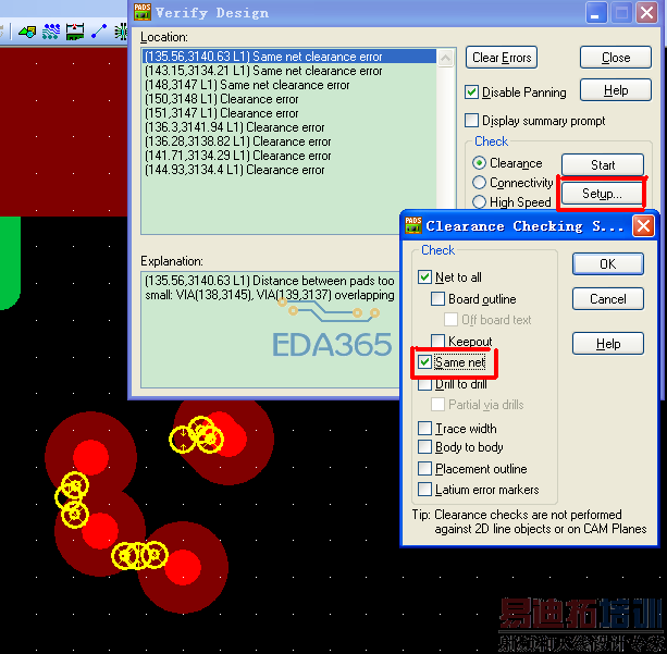 这个只能查找出同一网络的孔中心不在一点的两孔,但是不能找到中心点完全重合的孔