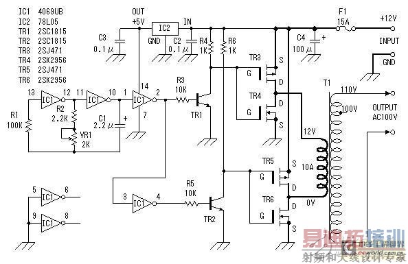 电路原理:该逆变器使用功率场效应晶体管作为逆变器装置。用汽车电池供电。因此,在输入电压为12伏直流电。输出电压是100V的交流电。但是,输入和输出电压不仅限于此。您可以使用任何电压。他们依赖于变压器使用。波形输出为方波。根据经验,这个电路约100W功率 。电路必须按装保险丝,因为过多的输入电流流动时,振荡器停止。